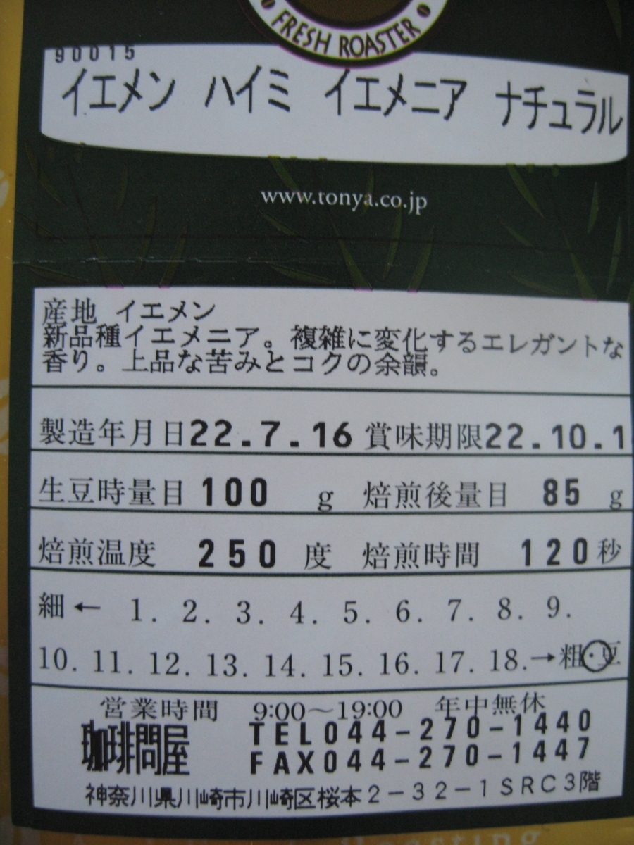 これも問屋さんの情報ですが、コーヒー豆の原種はエチオピアで生まれ、イエメンに渡ってブルボン種の原種となり、そこからブルボン種が多数生まれ世界に広がりまた種を作っているとか。そしてこのイエメニア種は全く新しい品種母体になるようです。このコーヒーが 100 g 三千円以上したのです🐱 2月のおすすめで Fresh Crop で購入した豆でしたが、7月にパーストクロップとして再購入となったわけで、100 g 三千円以上じゃしょうがなかったのねと思っています。